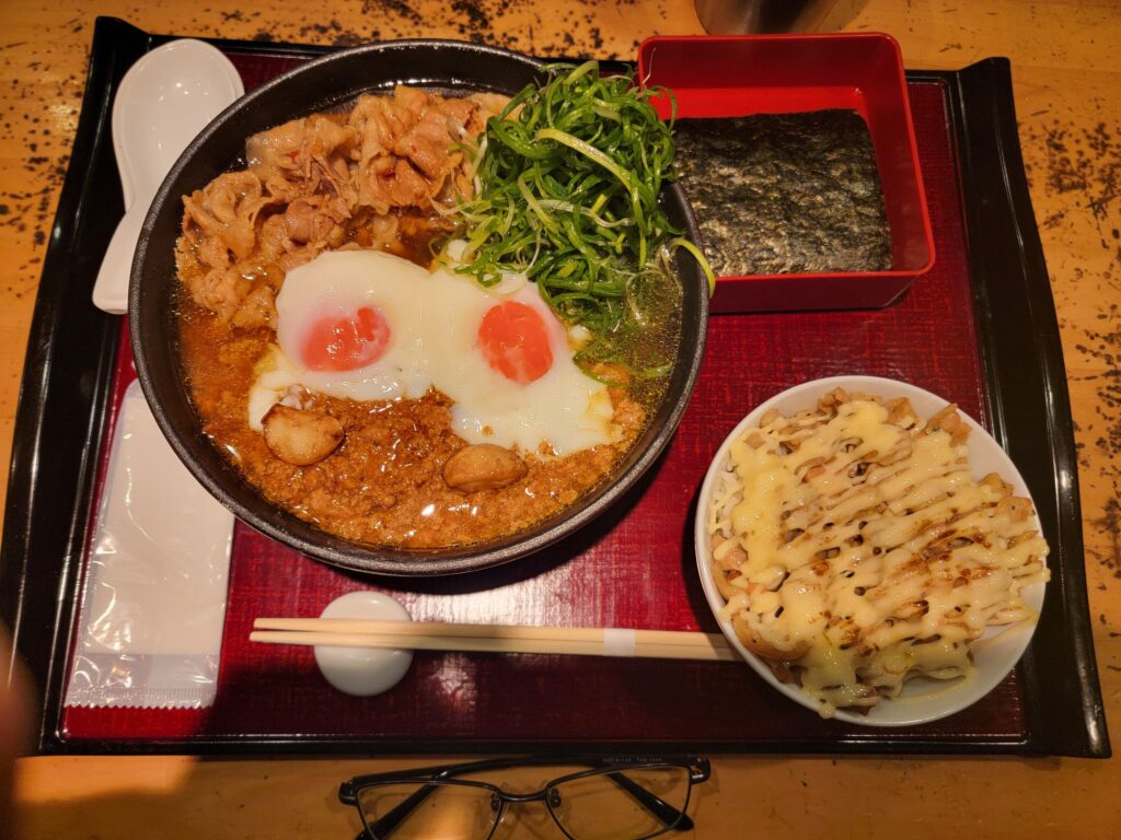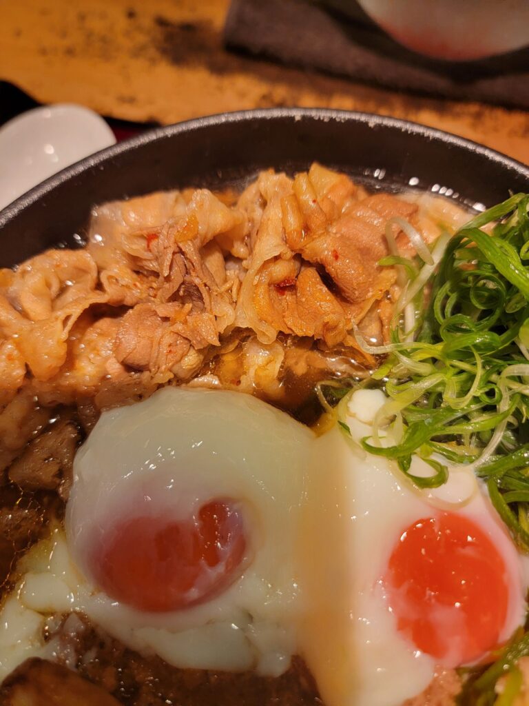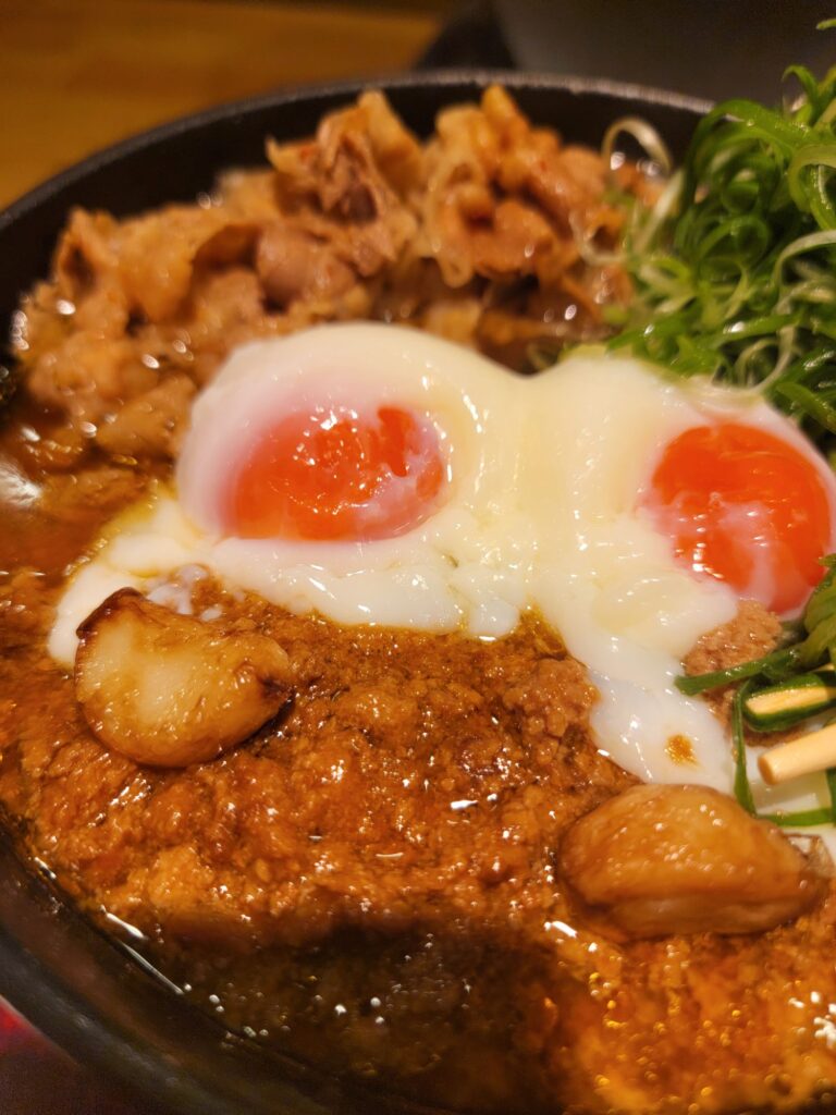温泉卵、豚肉、肉みそ、ニンニク、ねぎが入って690円
