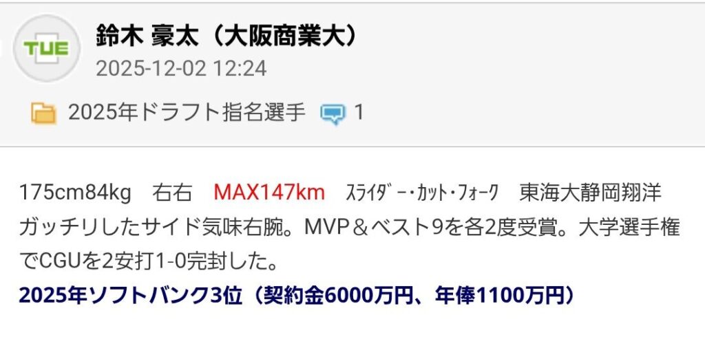 今回は2025年のドラフト会議で入団した